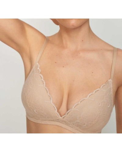 Sujetador triangular sin aros ,con encaje y con relleno.