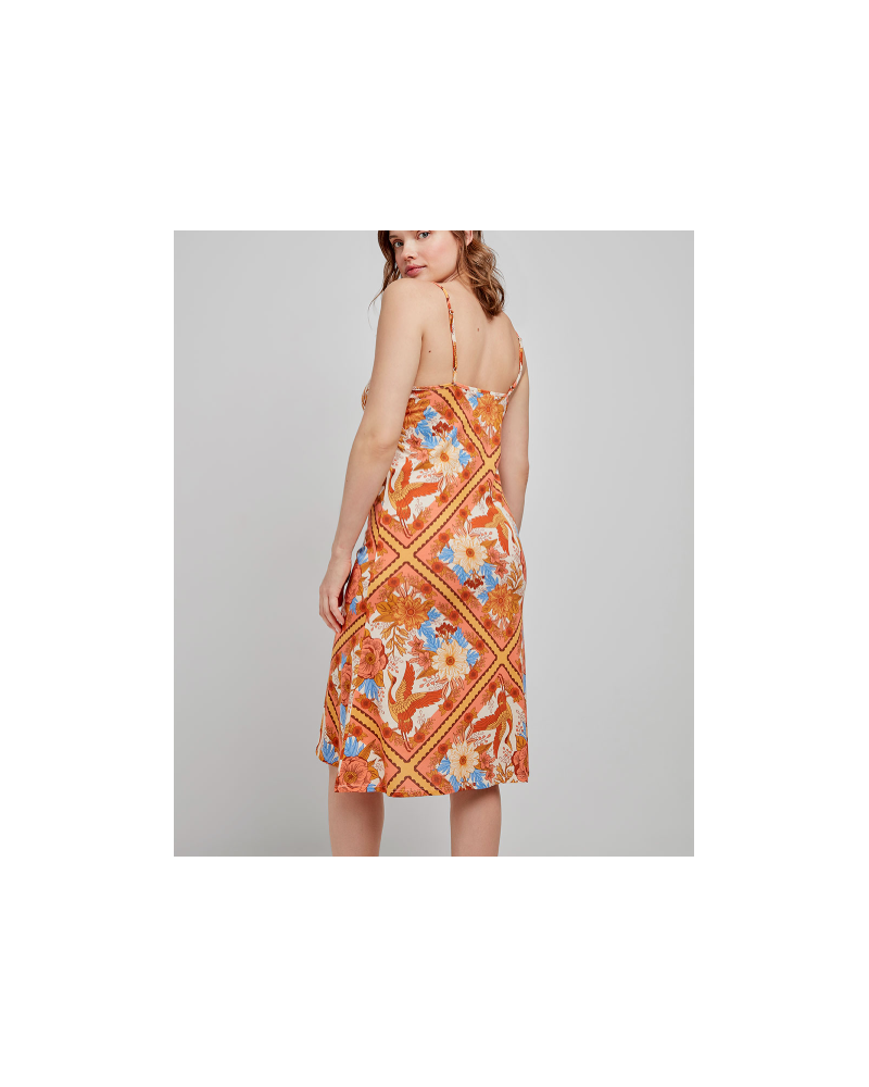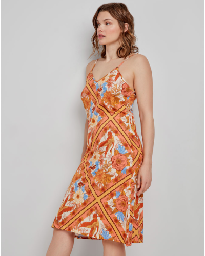 Camisón corto de tirantes en tejido estampado oriental. Combínalo con su bata y pijama a juego.