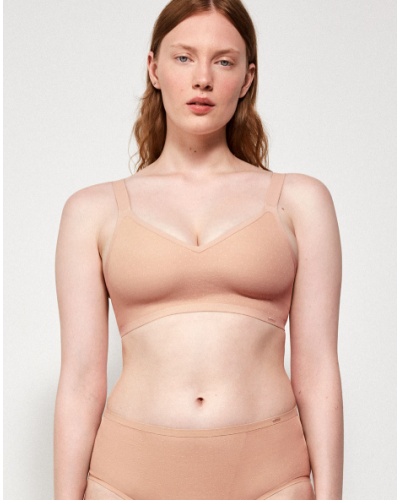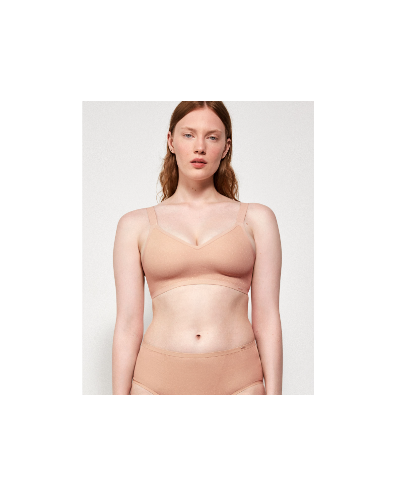 Sujetador capacidad sin aro y con copa extraíble para responder a las necesidades de cada momento. Tejido plumetti delicado y femenino, adherido a otro de microfibra que se adapta al cuerpo. Espalda anatómica para minimizar irregularidades. Acabados invisibles y termofusionados que no marcan, y garantizan una gran comodidad.