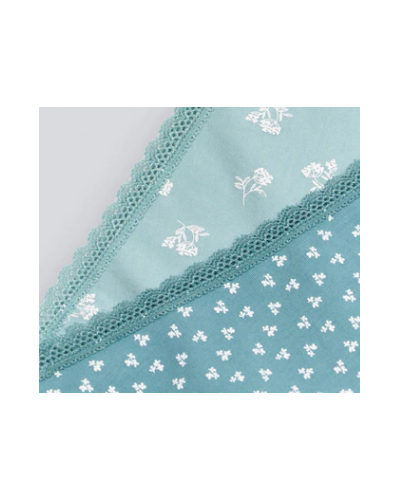 Pack de 2 bragas altas confeccionadas con algodón natural, por lo que son suaves y transpirables. Detalle de ligera blonda de encaje. Tonos azules. Se incluye una braga de cada estampado