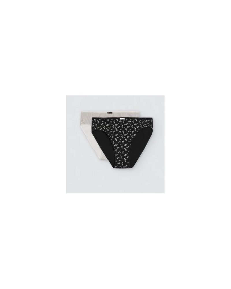 Pack de 2 bragas midi estampadas con algodón natural, un tejido suave y flexible. Con lazo delantero. Estampados en blanco y negro. El plack incluye una braga de cada estampado