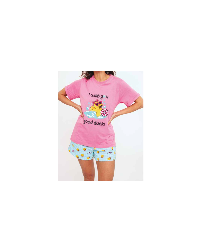 Pijama de mujer con dibujos tendencia de patitos, de manga y pantalón corto.