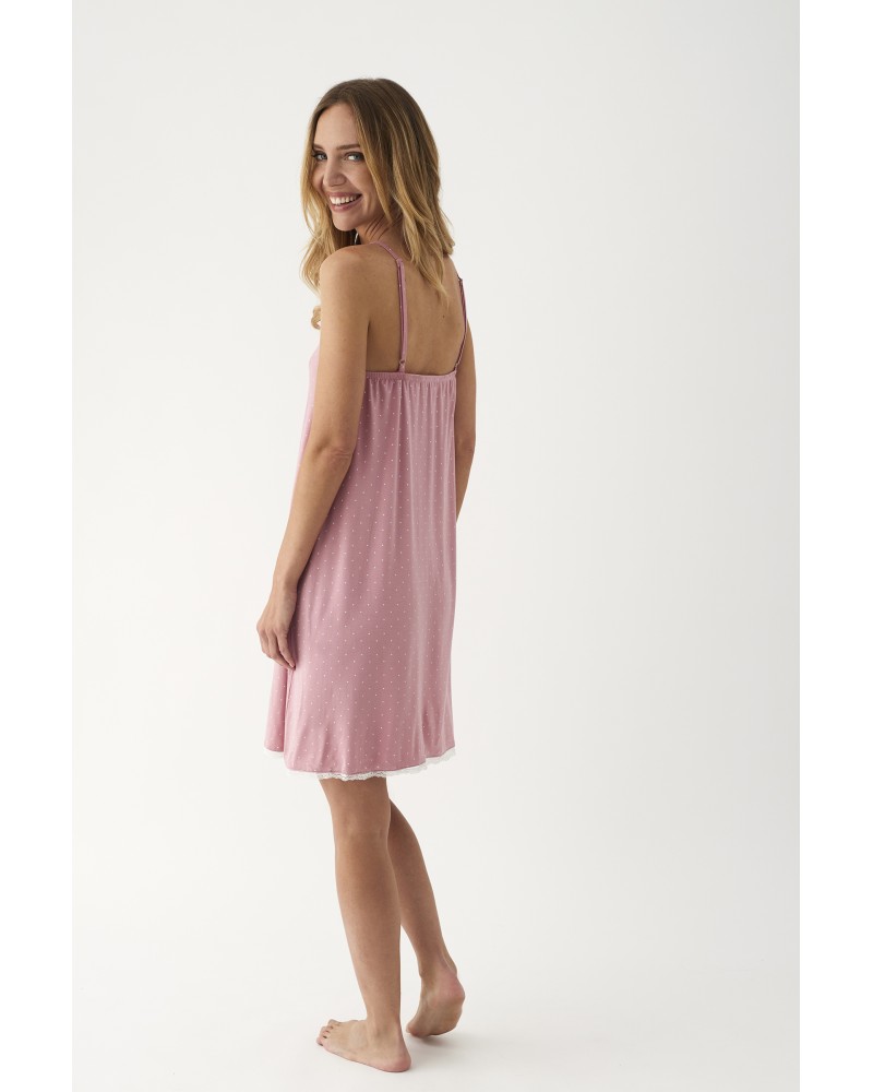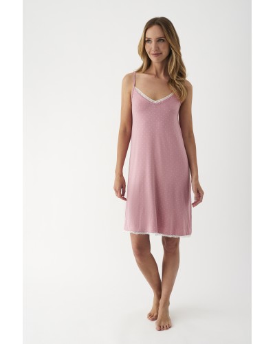 Camisón de tacto suave, de tirantito fino y pequeño detalle de blonda en la parte de abajo y por todo el filo superior.