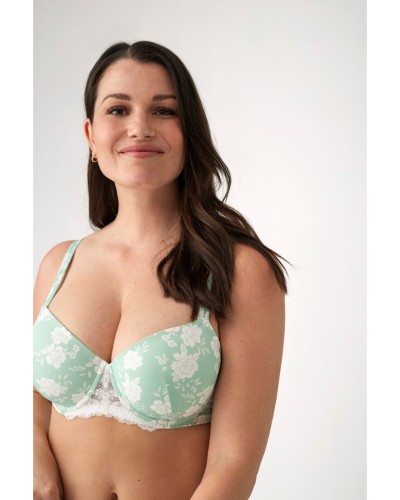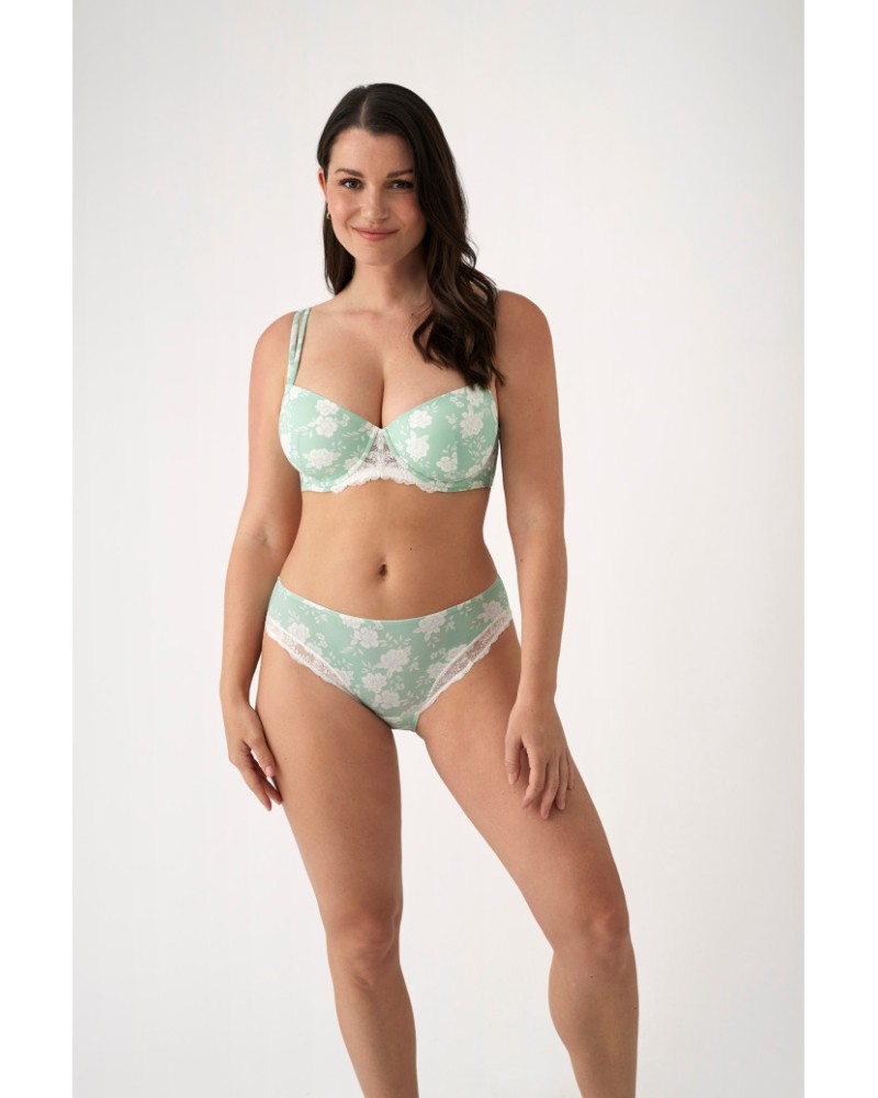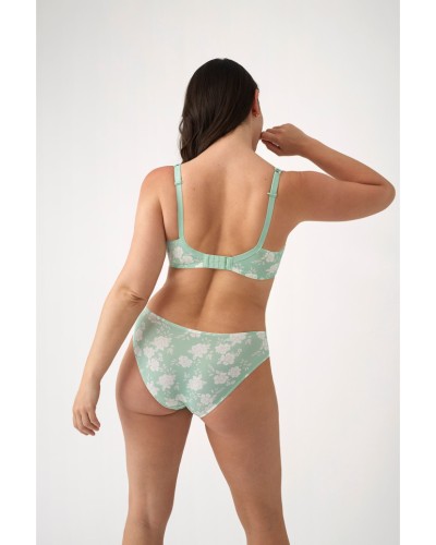 Conjunto de microfibra estampado con pequeños detalles de encaje. Sujetador con foam y con aro.