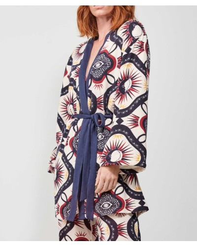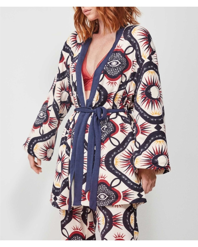 Bata larga con estampado oriental de manga media y anudada a la cintura con lazo. Combínala con pijama a juego.
