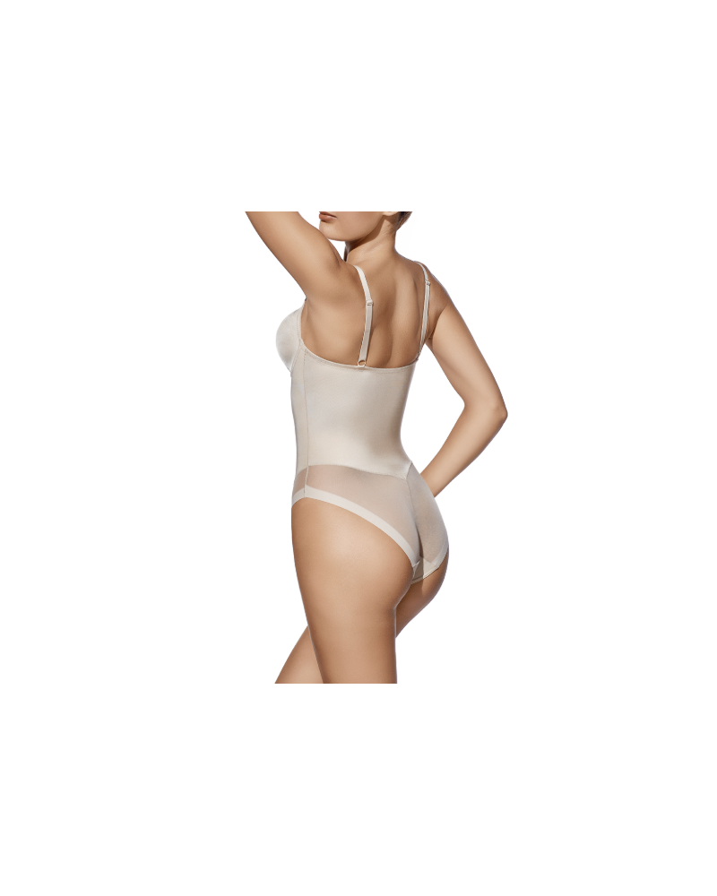 Body con aros y copa de relleno. Rematado en tules corte láser para un mejor ajuste. Proporciona una cobertura perfecta, alisando y estilizando la figura.