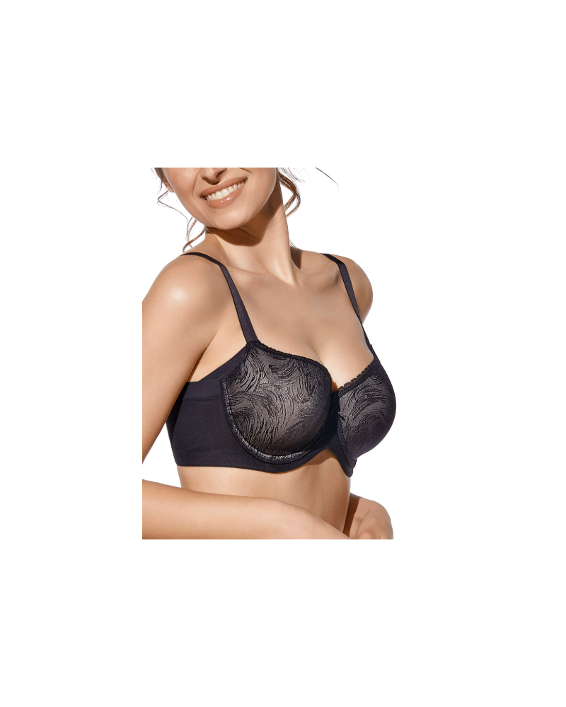 Sujetador con aro, sin foam y copas ligeras acolchadas en tejido spacer, super adaptables, que moldean el pecho sin aportar volumen. Patrón...