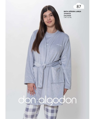 Bata de mujer de terciopelo elástico, cruzada con bolsillos delanteros