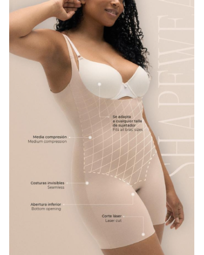 Body-up reductor de compresión media y corte láser. Acabados invisibles, antirroce, con abertura, corte láser, media compresión y realce de pecho