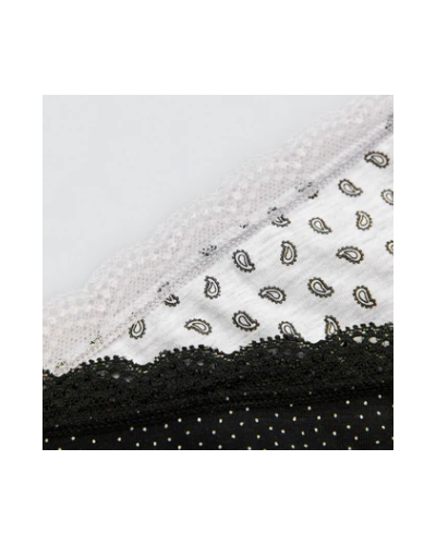 Pack de 2 bragas midi estampadas confeccionadas en algodón natural para un ajuste suave y cómodo. Cada prenda incluye un estampado distinto y un delicado acabado en el borde superior con puntilla decorativa, que añade feminidad sin perder funcionalidad.