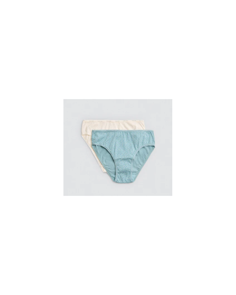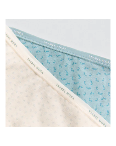 Pack de 2 braguitas midi para mujer, confeccionadas en algodón natural para un ajuste suave, cómodo y envolvente. Con un diseño de corte medio que ofrece mayor cobertura sin renunciar a la ligereza, cada prenda presenta un estampado sutil y femenino en tonos claros. La cinturilla elástica con el nombre de la marca completa el conjunto con un acabado delicado y actual.