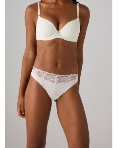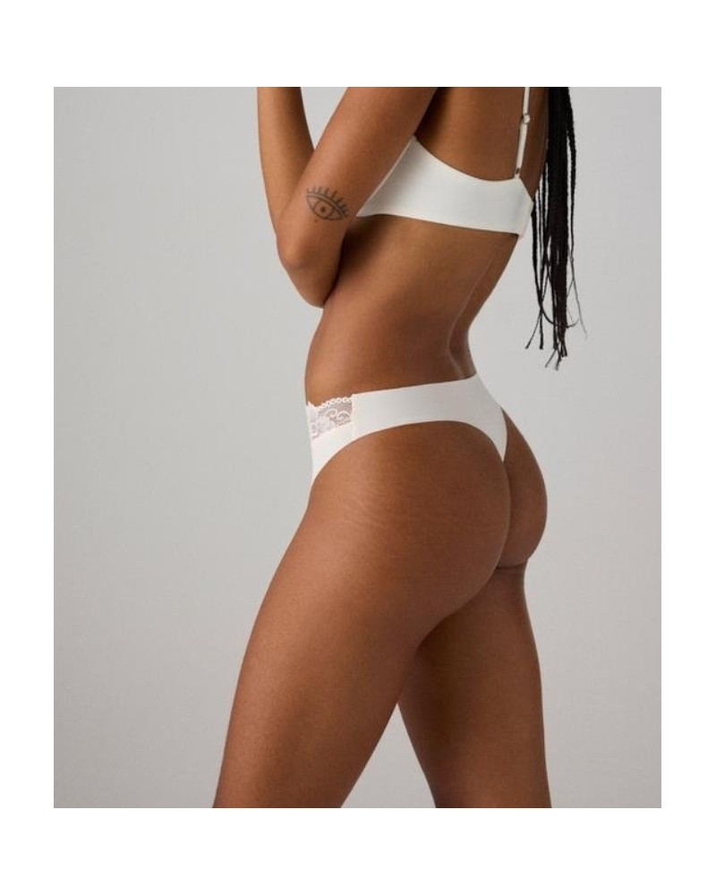 Tanga de licra corte láser con encaje de blonda en la cintura para una mayor sujección.