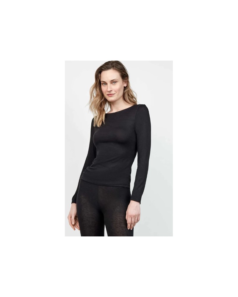 Camiseta ligera cuello redondo y manga larga. Tejido fino, suave y cálido con mezcla de lana y viscosa . Corte recto y carácter versátil para usarse tanto en interior como en exterior.