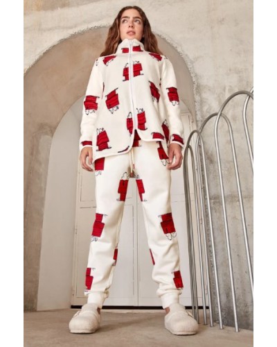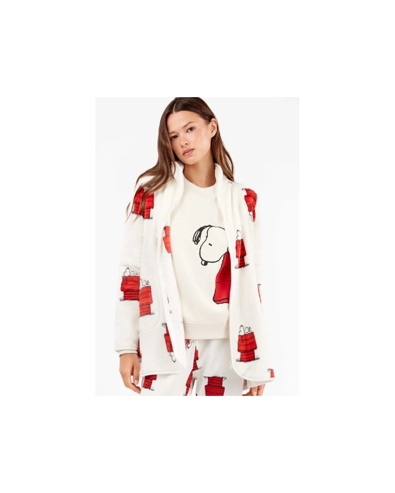 Bata de tejido peluche extrasuave con estampado de Snoopy, cuello alto y cremallera delantera.