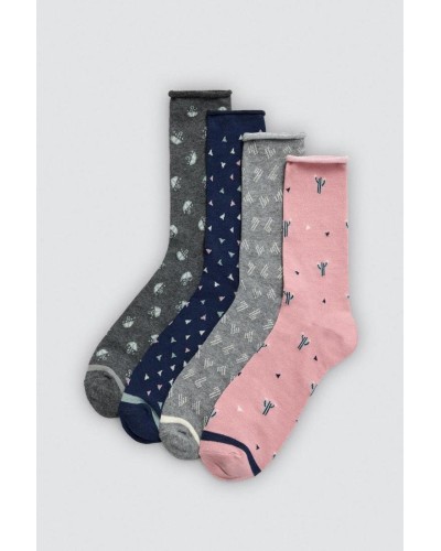 Calcetines estampados para mujer con diseño antipresión que ofrece un ajuste suave y cómodo.