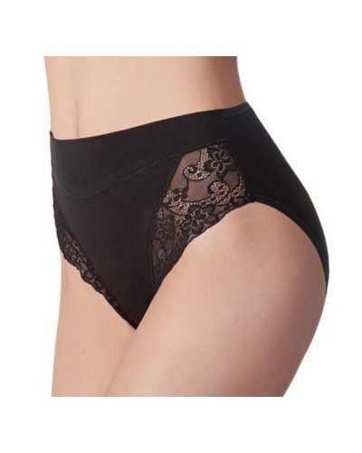 Braguita de cintura alta en tejido de punto con detalle de encaje en la ingle.