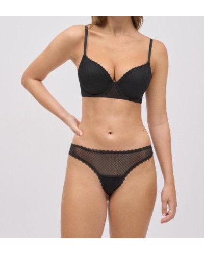 Conjunto lencero de sujetador con aros y push-up con tanga de encaje.De la marca Ysabel Mora