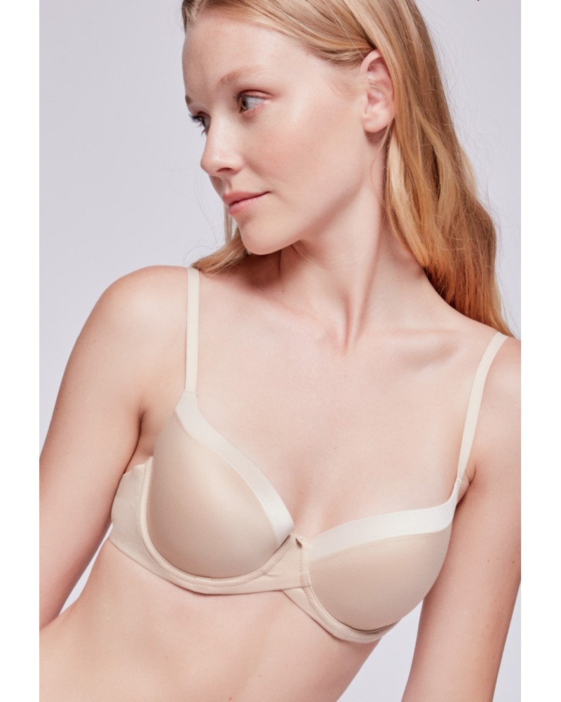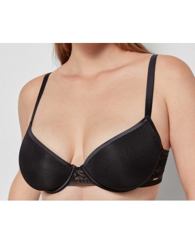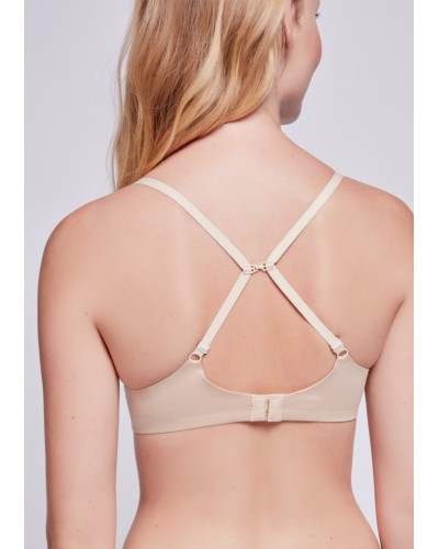 Sujetador capacidad con aro y foam. Copas Memory Fit que se adaptan a la forma de tu pecho. Tejido sin costuras para evitar marcas bajo la ropa y centro de pecho cruzado que estiliza la prenda. Tirantes regulables que incluyen enganche para poder cruzarlos. Espalda anatómica para una mayor sujeción y comodidad. Cierre trasero de cuatro posiciones.