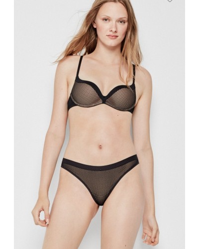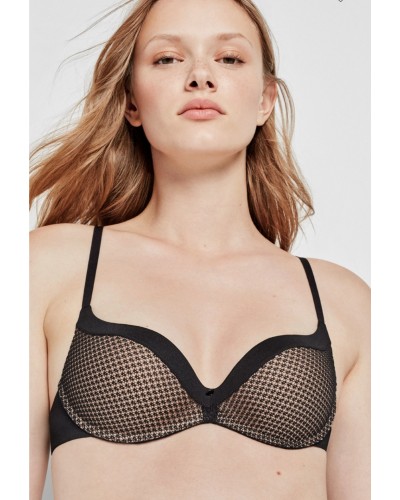 Sujetador push up +1 sin aro y con foam. Tirantes regulables que incluyen enganche para poder cruzarlos. Escote pronunciado con detalle de botón decorativo en el centro. Cierre trasero de cuatro posiciones.