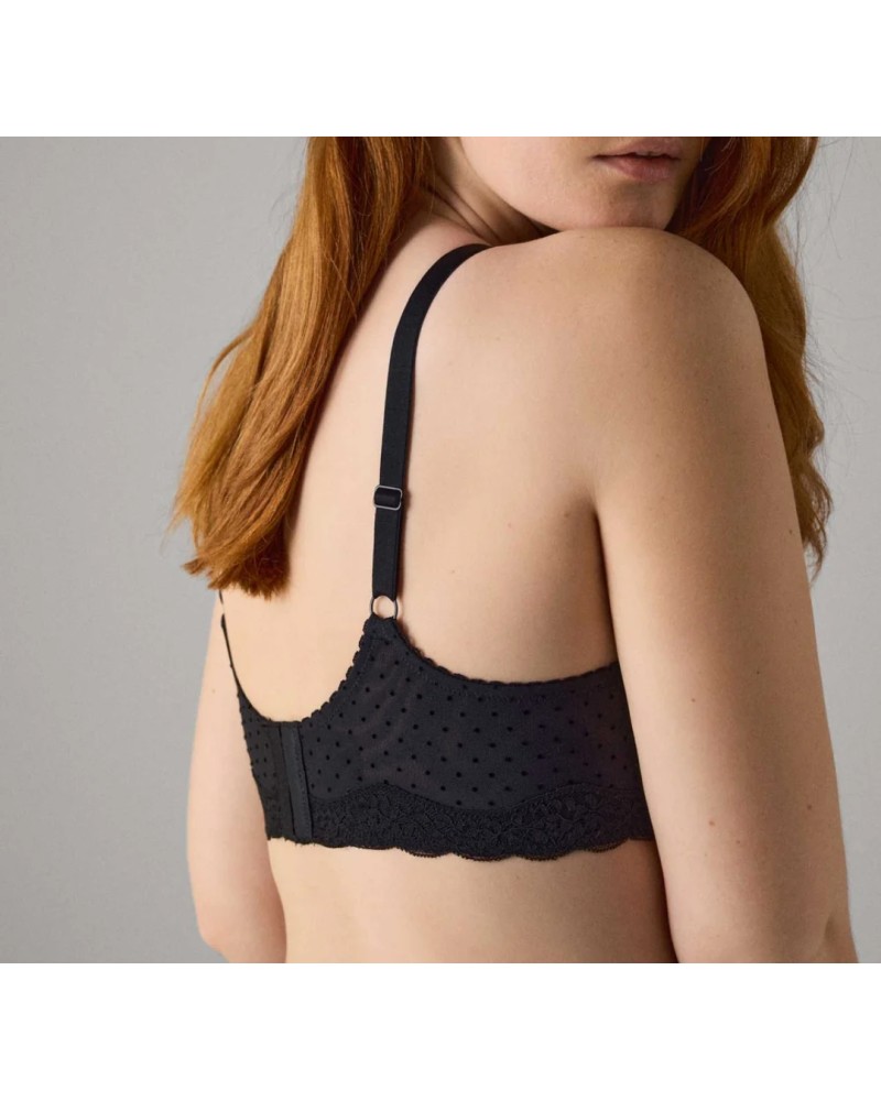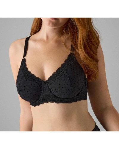 Sujetador reductor con aro en tejido de plumeti y espalda ancha con tres corchetes.