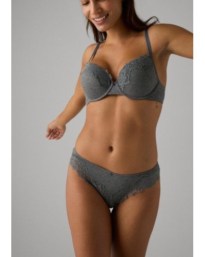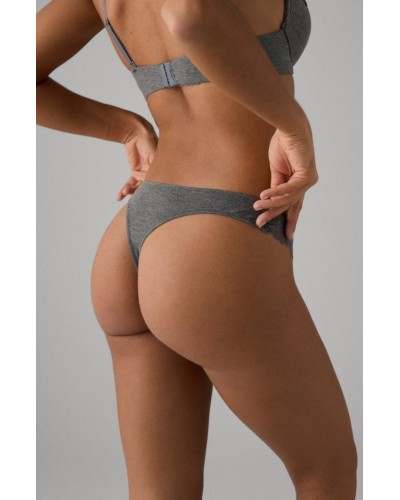 Tanga en tejido de canalé en modal con encaje en la cintura.