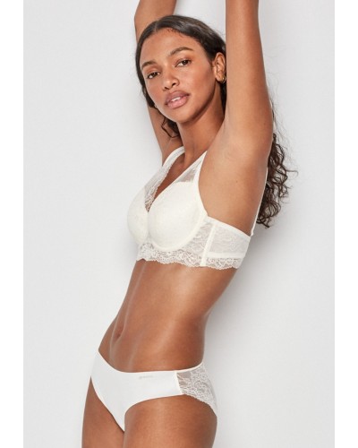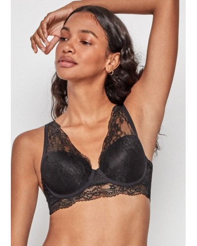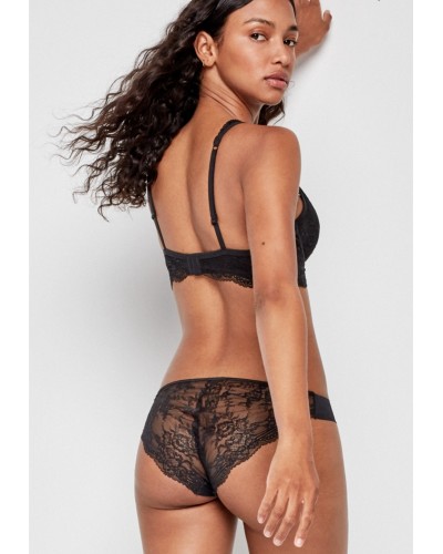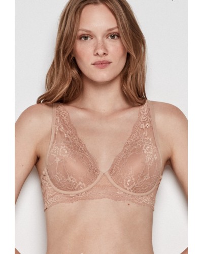 Sujetador bralette con aro y foam en tejido de encaje. Tirantes regulables y cierre trasero de cuatro posiciones
